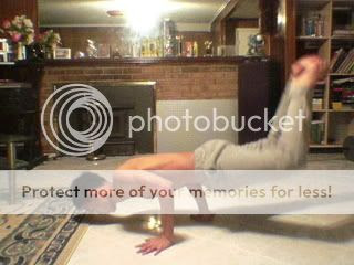 Sesaat kemudian, gerakan (disebut juga trik) pike dipertontonkannya. Berdiri dengan satu tangan, kedua kaki di atas badan. Kemudian diikuti dengan trik apple jack. Tangan dua di belakang, kaki melompat ke atas beberapa kali. Dia lalu minggir untuk memberi giliran kepada Stefanus Christanto, rekan sesama B-boys (sebutan seorang penari breakdance).